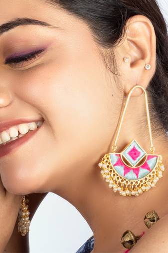 Let Your Style Shine With The Sunshine Blush Tassel Earrings, A Vibrant Combo Of Mustard Yellow And Hot Pink Embroidery, Finished With Pearls. These Long Danglers Are Perfect For Mehendi Events Or Haldi Ceremonies, Adding A Fun, Festive Touch To Your Outfit. Pair Them With A Bright Lehenga Or Saree For An Effortlessly Chic Look.
