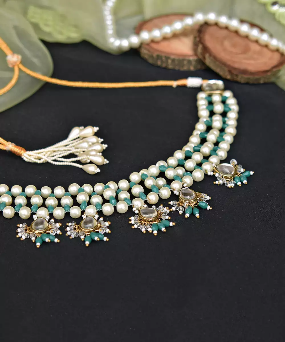 Pearls Always Seem To Be The Perfect Jewelry Companions. Take The Center Stage With This Traditional Ethnic Jewelry, Handmade With Intricacy. The Necklace Embellished With Faux White Pearls Will Be Perfect With Traditional Attire To Look Gorgeous In No Time.