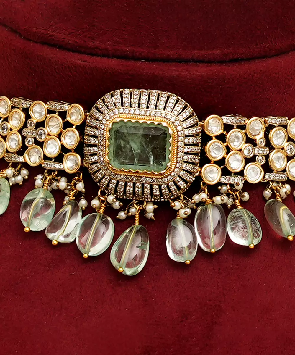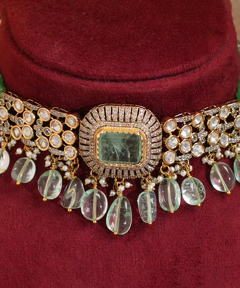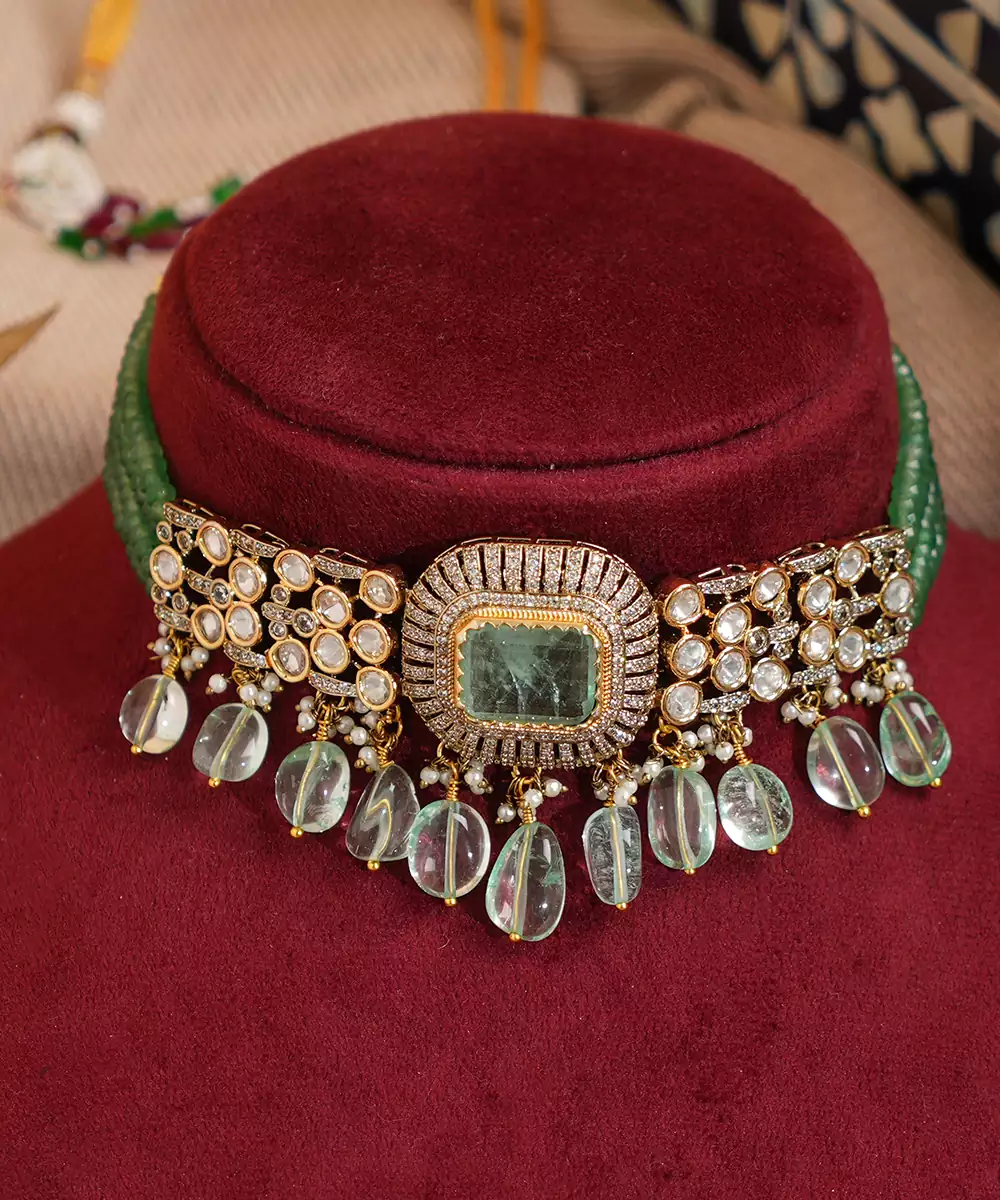 Turn Heads With This Mint Choker Necklace Set, Designed To Give You The Trendiest Look In Town. Crafted With Precision, This Exclusive Choker Features A Refreshing Mint Hue Adorned With Intricate Detailing, Making It A Must Have For Fashion Forward Women.