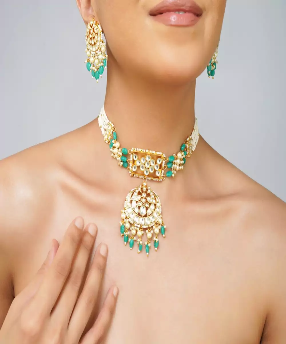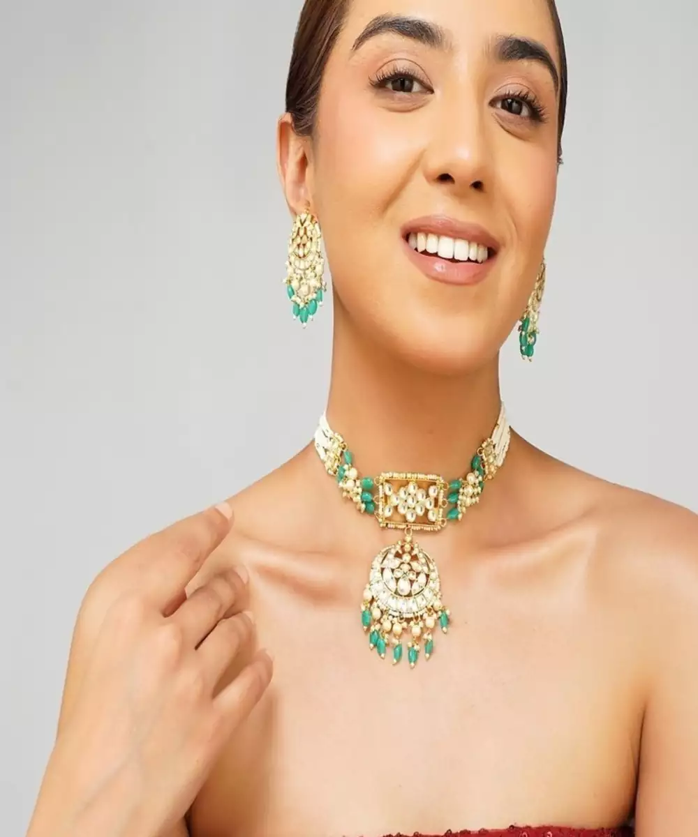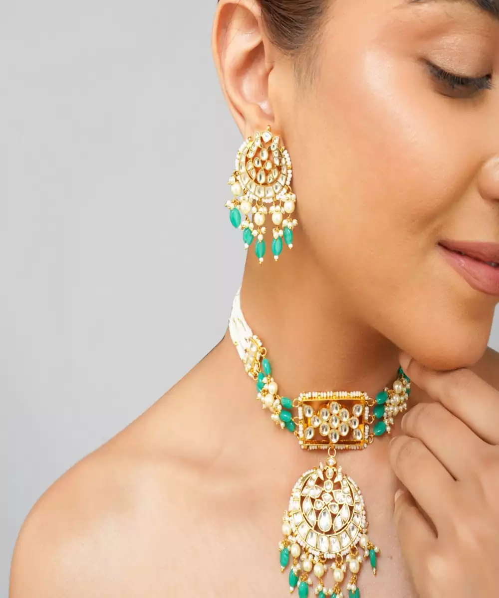Step Into Timeless Elegance With This Stunning Multi Color Kundan Choker Set, Featuring Radiant Emerald Green Pearls And Traditional Craftsmanship. Expertly Handcrafted To Mimic The Richness Of Real Gold Jewelry, This Choker Set Is Finished In High Quality 22 K Gold Plating, Making It A Standout Choice For Weddings, Festive Occasions, And Royal Ethnic Styling.