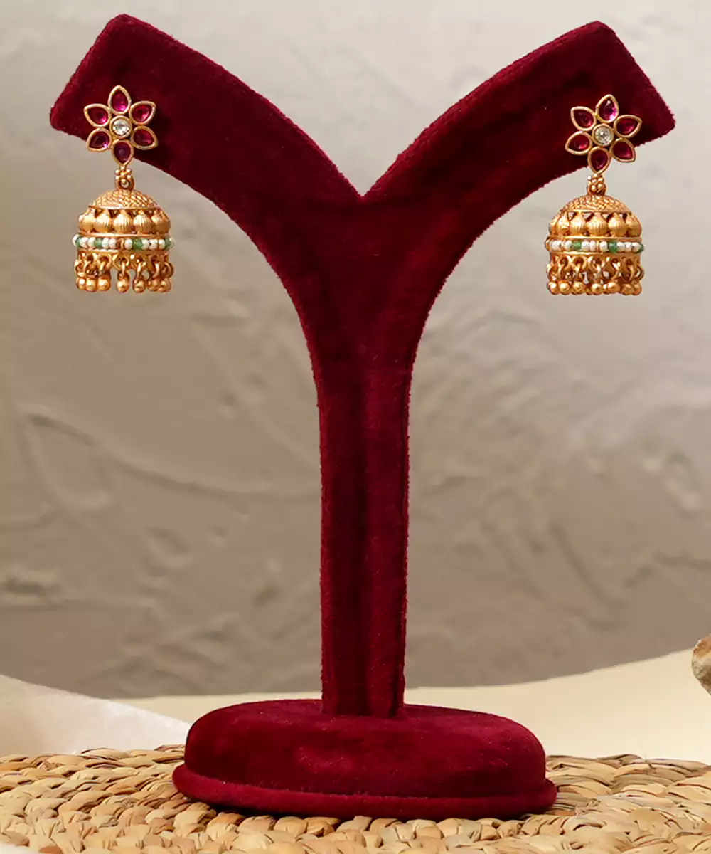 Gold Plated Kundan Necklace Set Embellished With Rich Green Stones, Reflecting Timeless Elegance And Royal Charm. Designed With Intricate Craftsmanship And A Luxurious Finish, This Stunning Set Is Perfect For Weddings, Festive Occasions, And Celebrations, Beautifully Enhancing Traditional And Ethnic Ensembles With A Graceful, Regal Appeal.