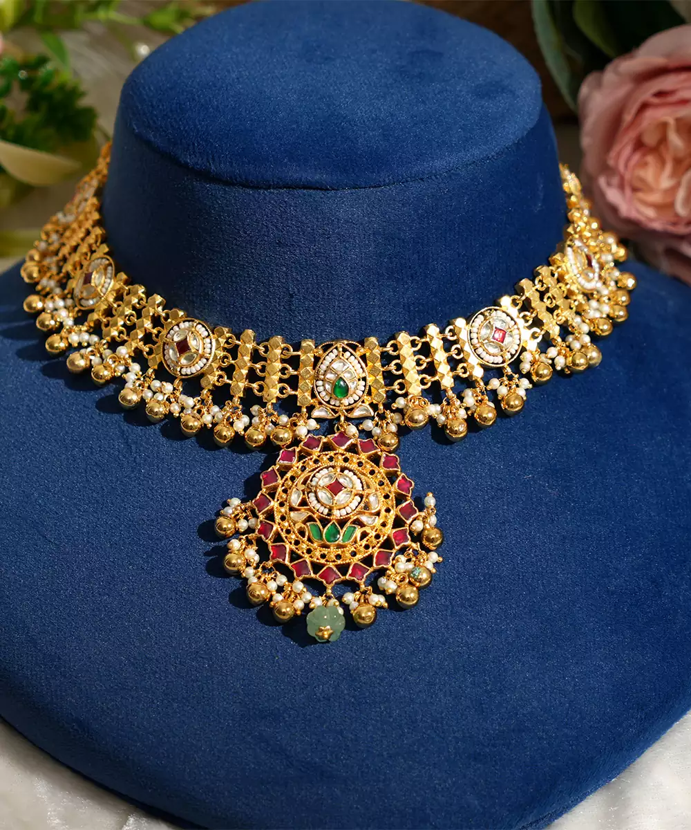 This Gold Plated Kundan Multicolor Stones Pearl Beaded Necklace Set Exudes Regal Elegance And Timeless Beauty. Adorned With Vibrant Stones And Lustrous Pearls, It Showcases Intricate Craftsmanship And A Radiant Finish. Ideal For Weddings, Festive Occasions, Or Celebrations, It Enhances Traditional Ensembles With Luxurious Charm And Graceful Sophistication.