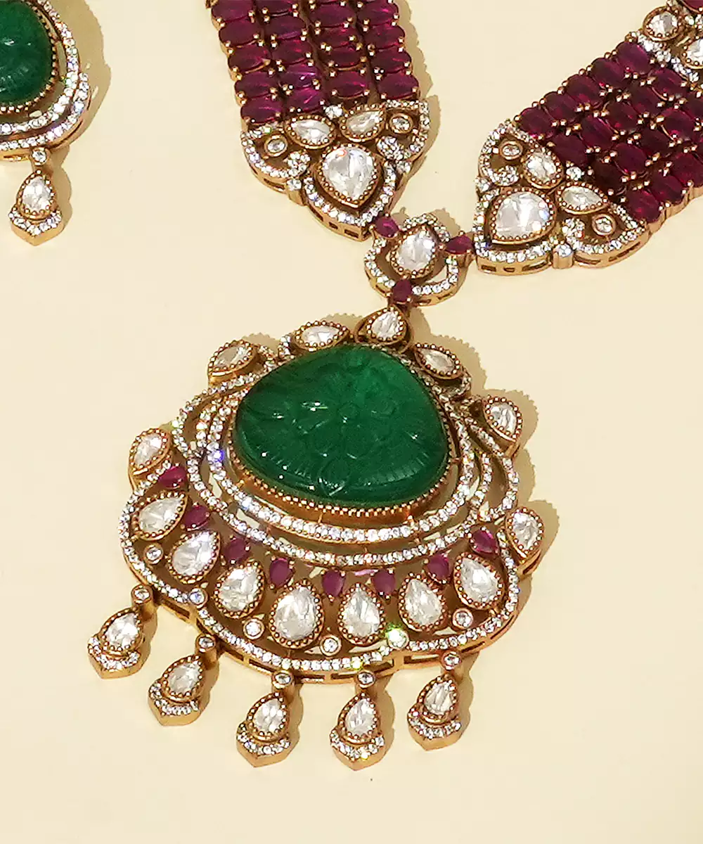 Gold Plated Kundan Necklace Set Embellished With Vibrant Multicolor Stones, Showcasing Exquisite Craftsmanship And A Regal Finish. Designed To Add Elegance And Charm, This Set Is Ideal For Weddings, Festive Occasions, And Celebrations, Beautifully Complementing Traditional And Ethnic Outfits With A Rich, Timeless Appeal.
