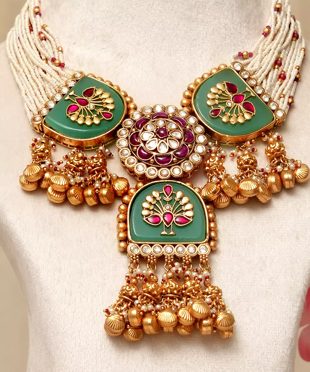 Gold Plated Kundan Multicolor Stones Necklace Set Is A Vibrant And Exquisite Accessory That Elevates Any Festive Or Wedding Ensemble. Featuring Intricate Kundan Craftsmanship Adorned With Dazzling Multicolor Stones, It Brings A Perfect Blend Of Tradition And Contemporary Elegance. Ideal For Special Occasions, It Adds A Regal And Eye Catching Charm.