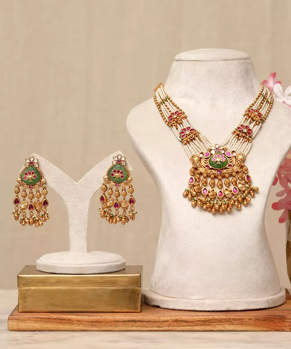 Gold Plated Kundan Multicolor Stones Necklace Set