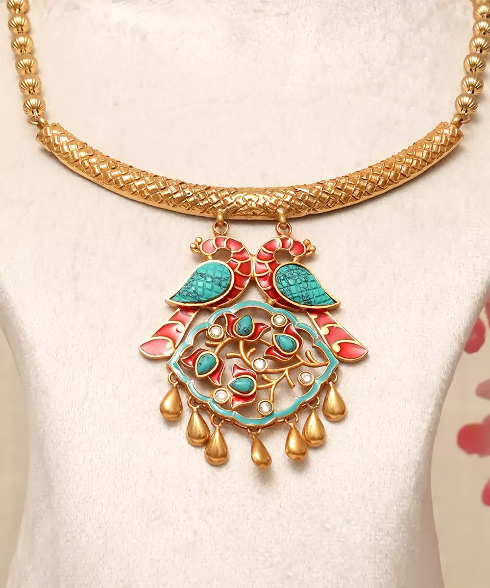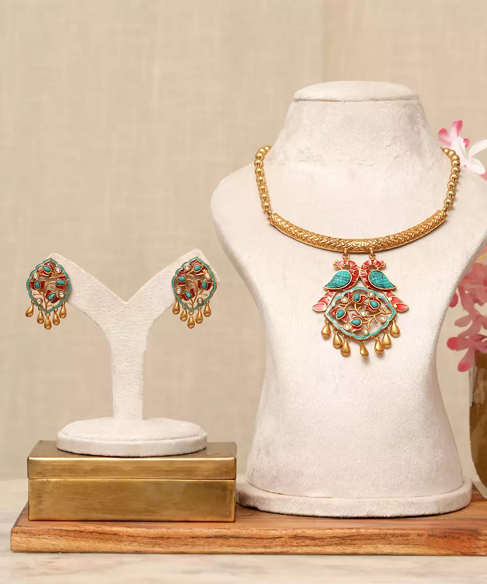 Gold Plated Kundan Multicolor Stones Necklace Set
