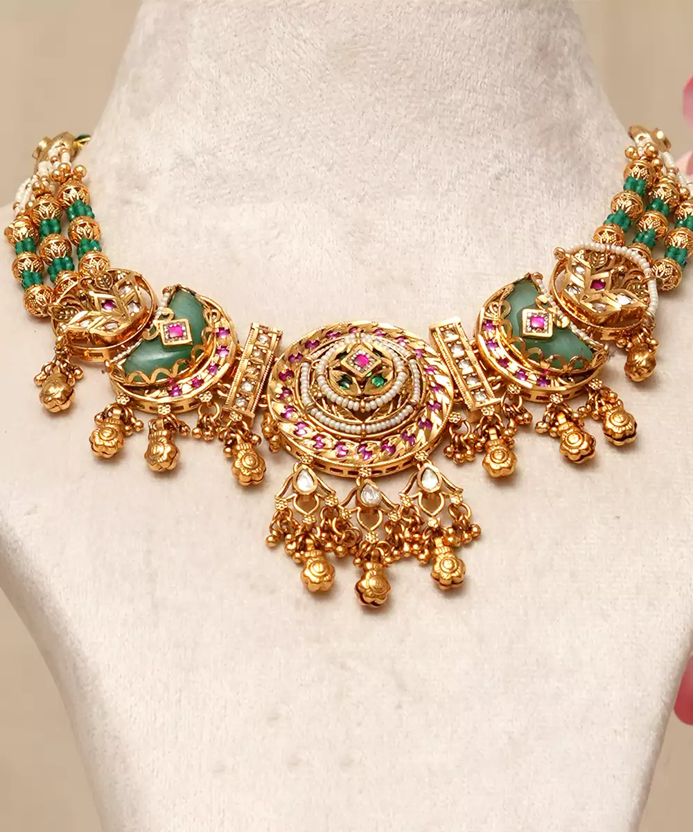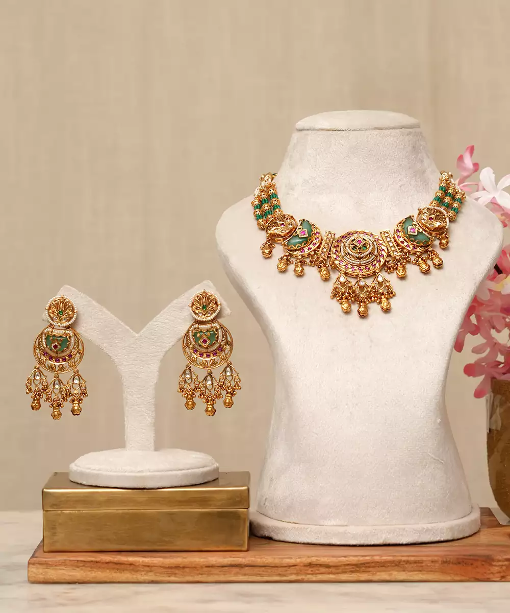 Gold Plated Kundan Multicolor Stones Necklace Set