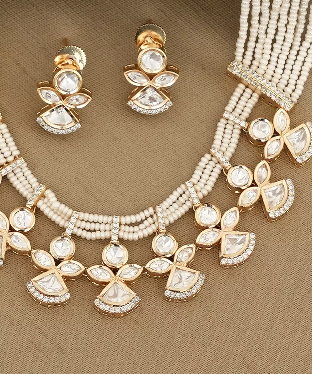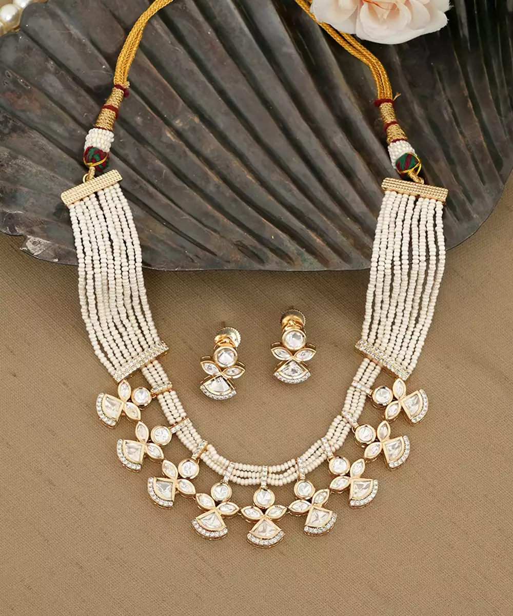 This Gold Plated Kundan Necklace Set Showcases Timeless Elegance With Its Traditional Design And Fine Craftsmanship. Adorned With Classic Kundan Work, It Adds Royal Charm To Any Ethnic Outfit. Perfect For Weddings, Festive Occasions, And Celebrations, This Necklace Set Enhances Your Look With Graceful Sparkle.