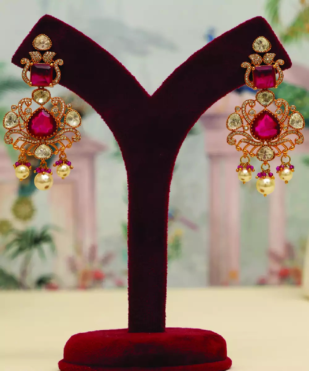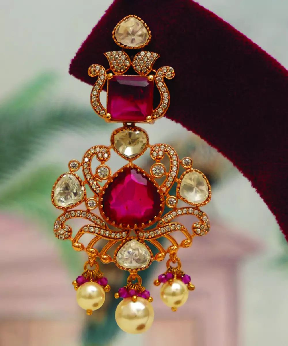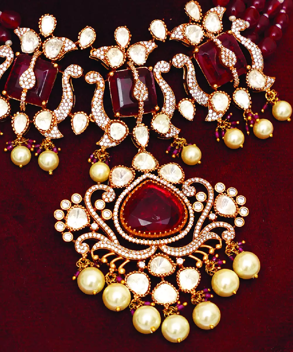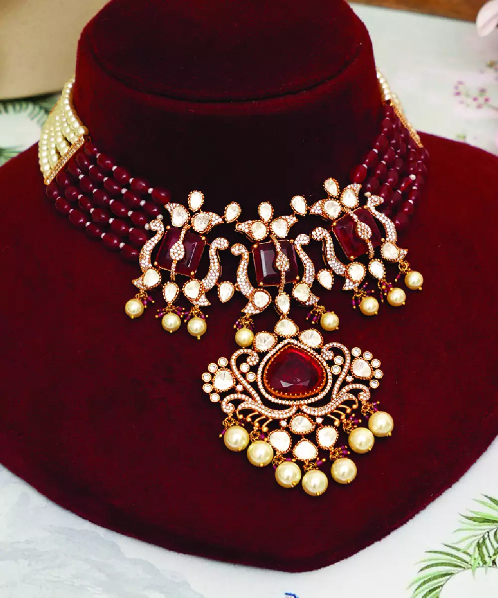 Designed With Striking Red Stones, This Gold Plated Kundan Choker Necklace Set Exudes Timeless Elegance. The Intricate Craftsmanship And Rich Tones Make It Perfect For Weddings And Festive Wear. Its Bold Yet Graceful Design Enhances Ethnic Outfits, Adding A Luxurious And Traditional Charm To Your Overall Look.