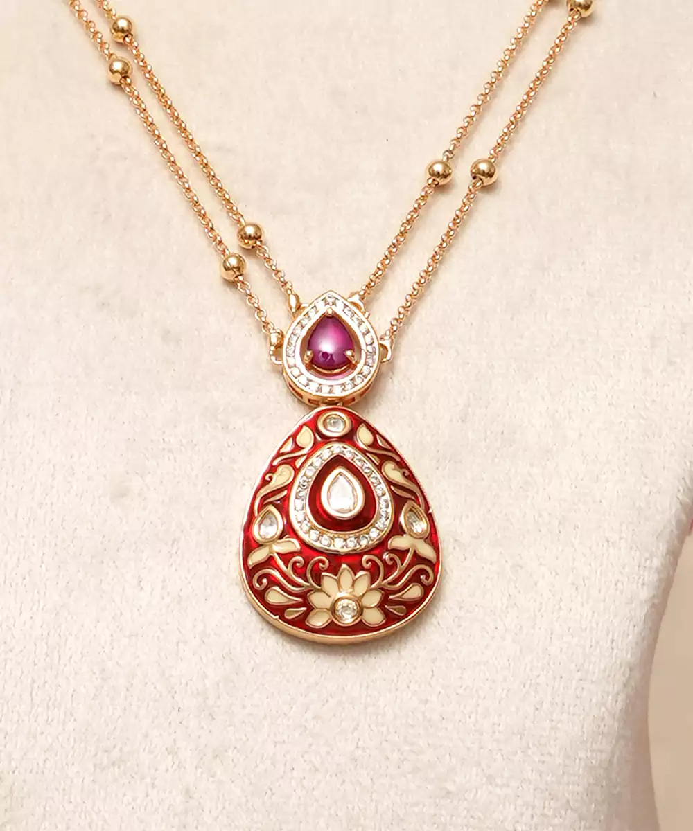 Gold Plated Kundan Red Stones Necklace Set Is A Striking And Elegant Piece That Radiates Traditional Charm. Featuring Intricate Kundan Craftsmanship And Vibrant Red Stones, It Adds A Rich, Festive Touch To Any Ethnic Outfit. Perfect For Weddings, Celebrations, And Special Occasions, This Necklace Set Exudes Timeless Beauty And Sophistication.