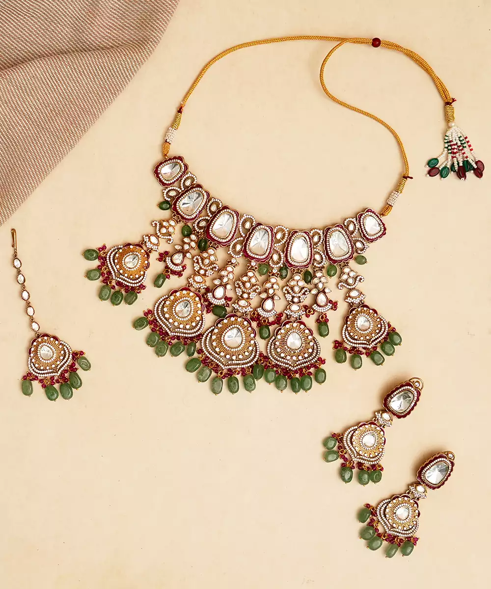 Components: 1 Necklace / 1 Maang Tikka / 1 Pair Of Earrings