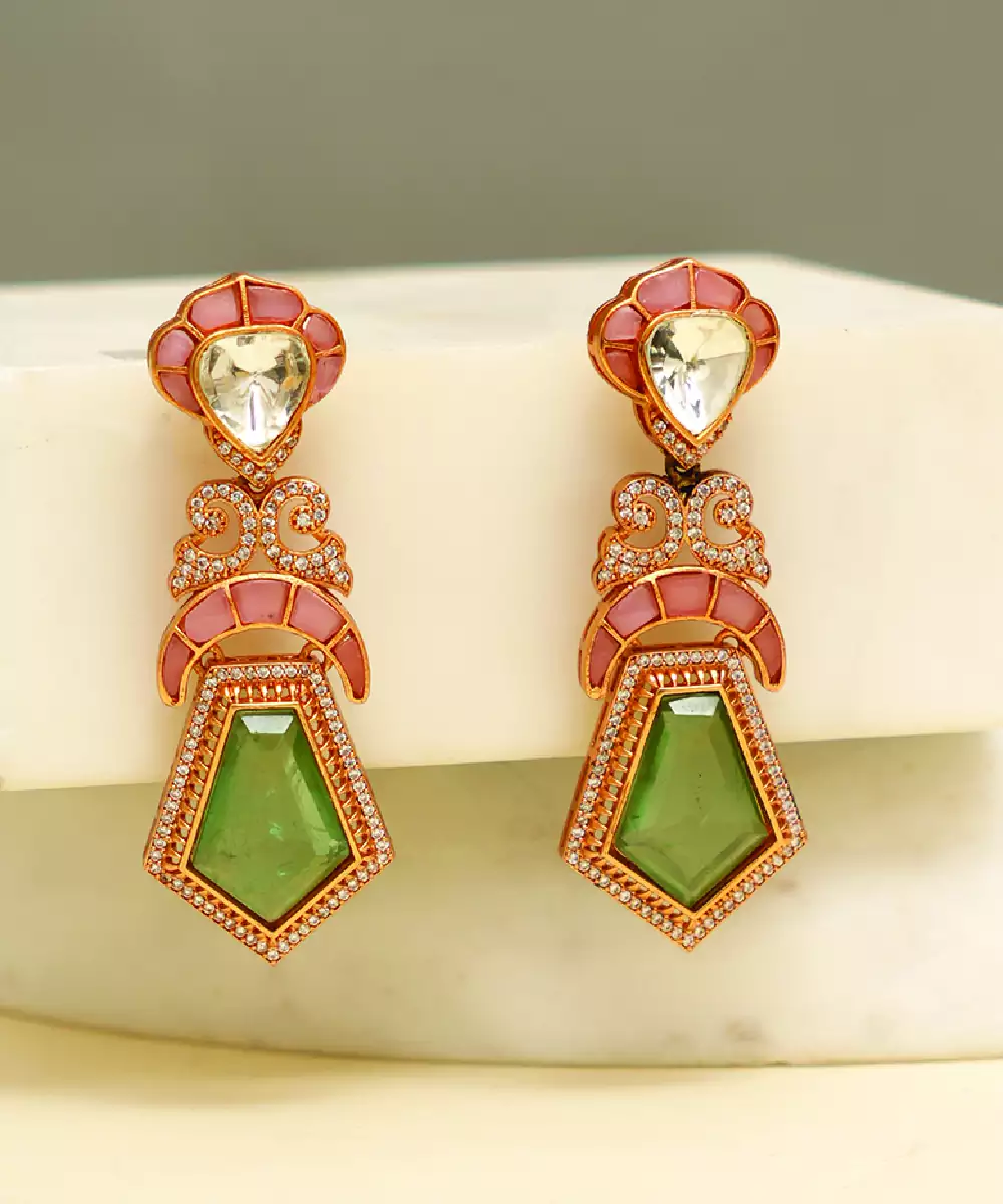 These Gold Plated Earrings Showcase A Beautiful Arrangement Of Multicolor Stones, Creating A Lively And Elegant Appeal. The Intricate Design Adds Charm, Making Them Ideal For Festive Occasions. Lightweight And Versatile, They Complement A Variety Of Outfits While Adding A Vibrant And Sophisticated Finishing Touch.