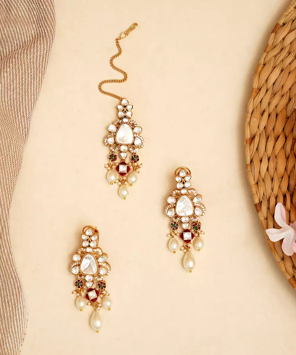 Components: 1 Necklace / 1 Maang Tikka / 1 Pair Of Earrings