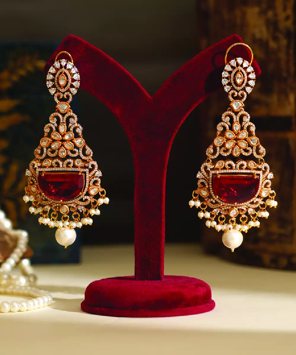 These Gold Plated Red Stones Danglers Combine Traditional Charm With Modern Elegance. The Vibrant Stones And Graceful Design Make Them Perfect For Festive Wear. Lightweight And Stylish, They Enhance Your Look With A Bold Yet Refined Touch, Adding Sophistication To Any Outfit.