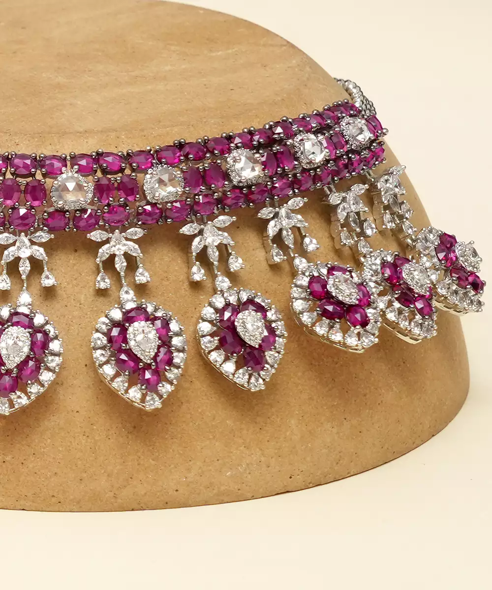 Zircon Red Stones Necklace Set Is A Striking And Elegant Piece That Radiates Traditional Charm. Featuring Intricate Kundan Craftsmanship And Vibrant Red Stones, It Adds A Rich, Festive Touch To Any Ethnic Outfit. Perfect For Weddings, Celebrations, And Special Occasions, This Necklace Set Exudes Timeless Beauty And Sophistication.
