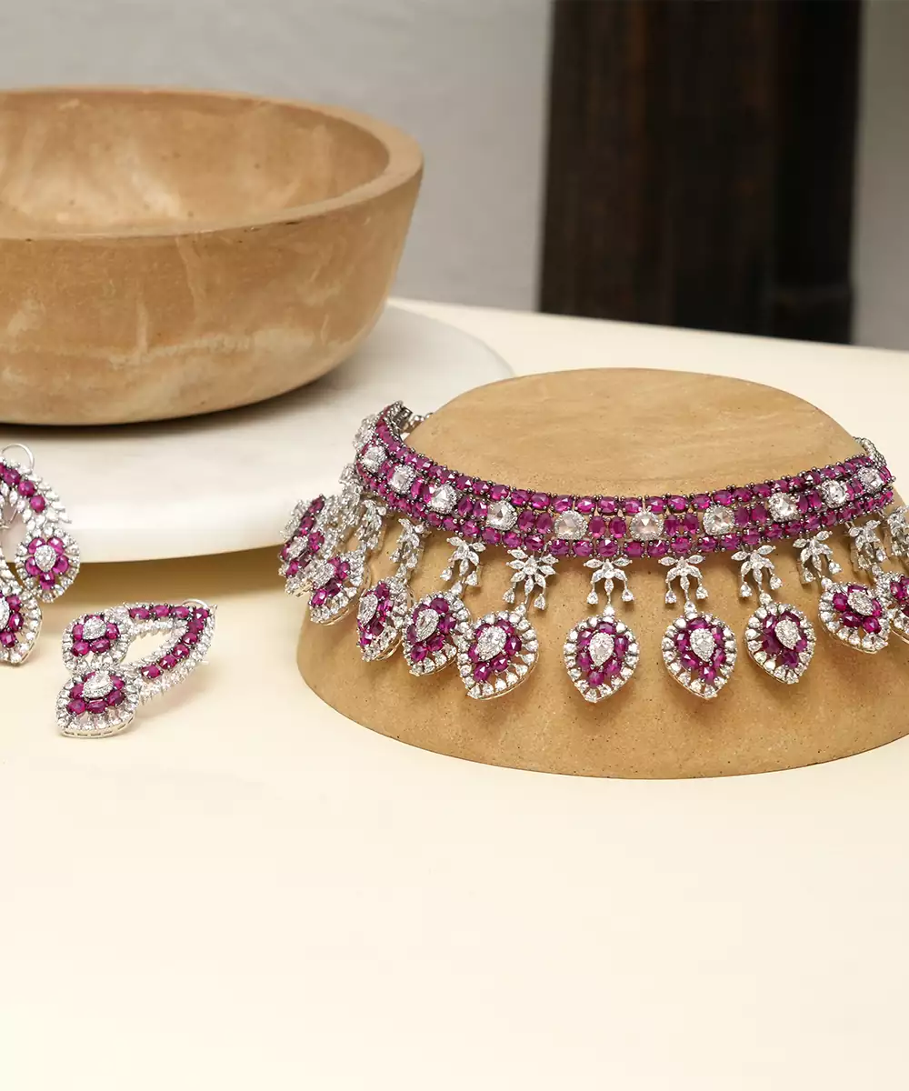 Zircon Red Stones Necklace Set