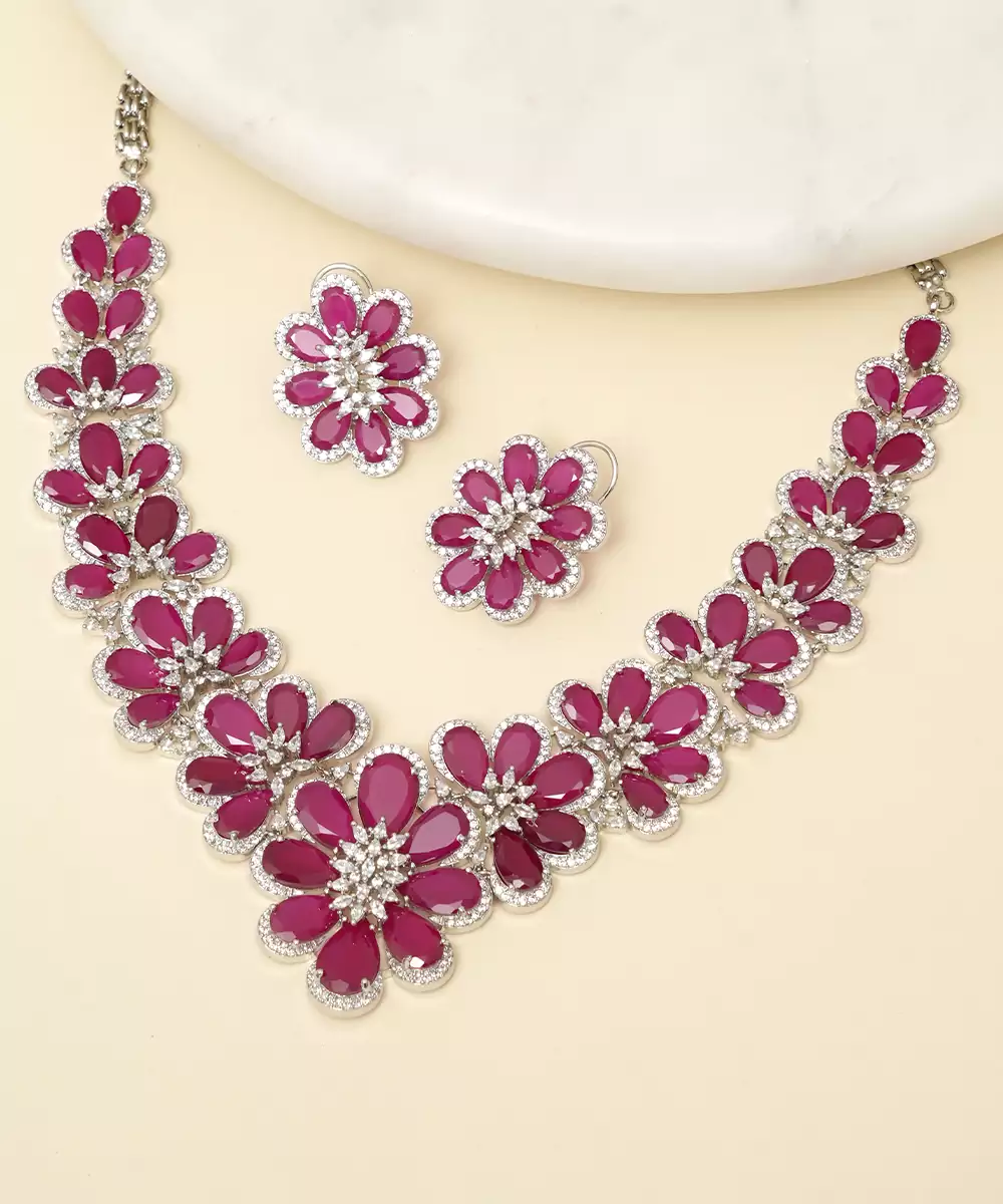 Zircon Red Stones Necklace Set