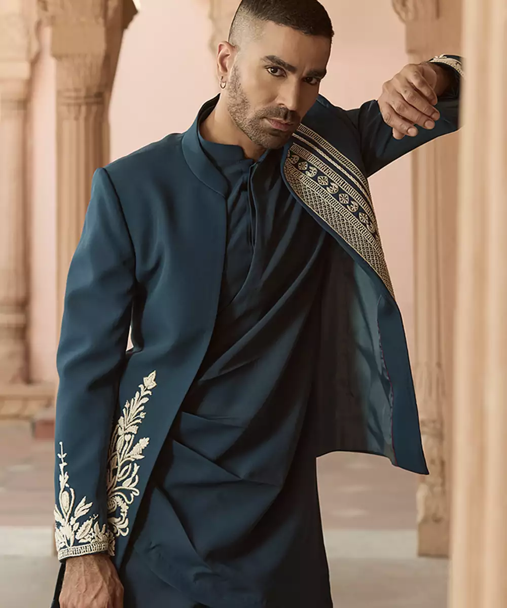 Components: 1 Kurta / 1 Indo Western Jacket / 1 Pant