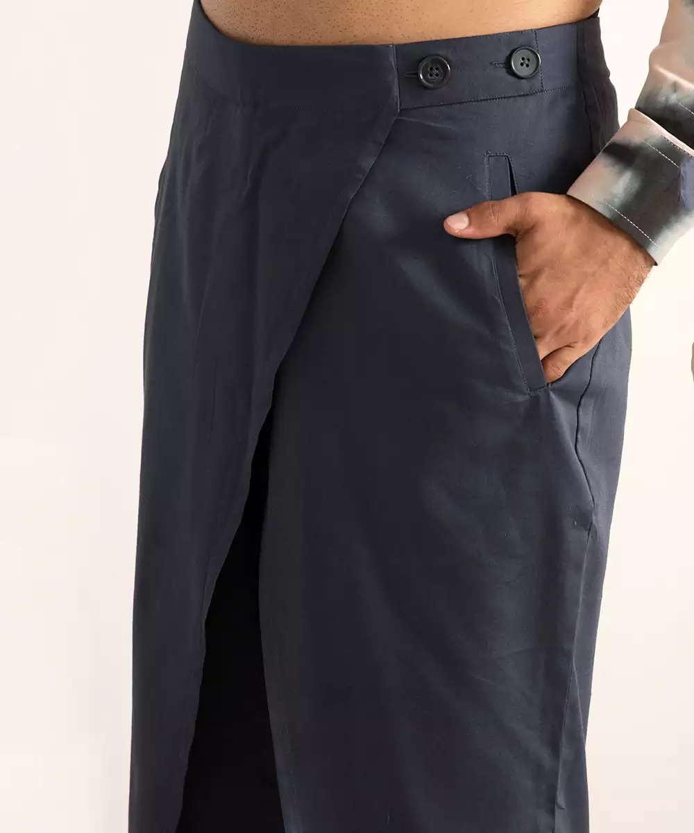 A Short Tie & Dye Kurta With An Overlapped Pannel With Panneled Pants.