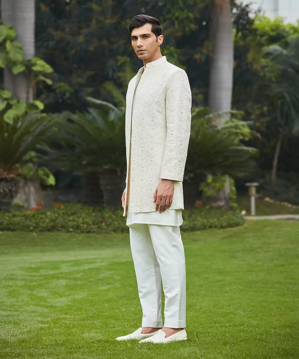 Keep Your Fashion Game Strong With Our Itvara Open Achkan Jacket Set