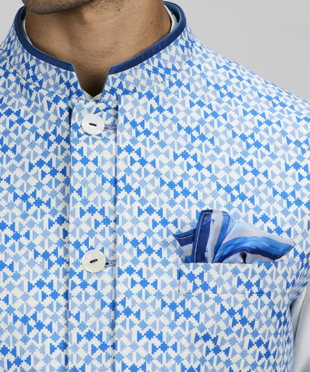 Azure Pixel Printed Layered Bandhi Jacket Colour: Blue Fabric: Cotton Components: 1 Bandhi Jacket