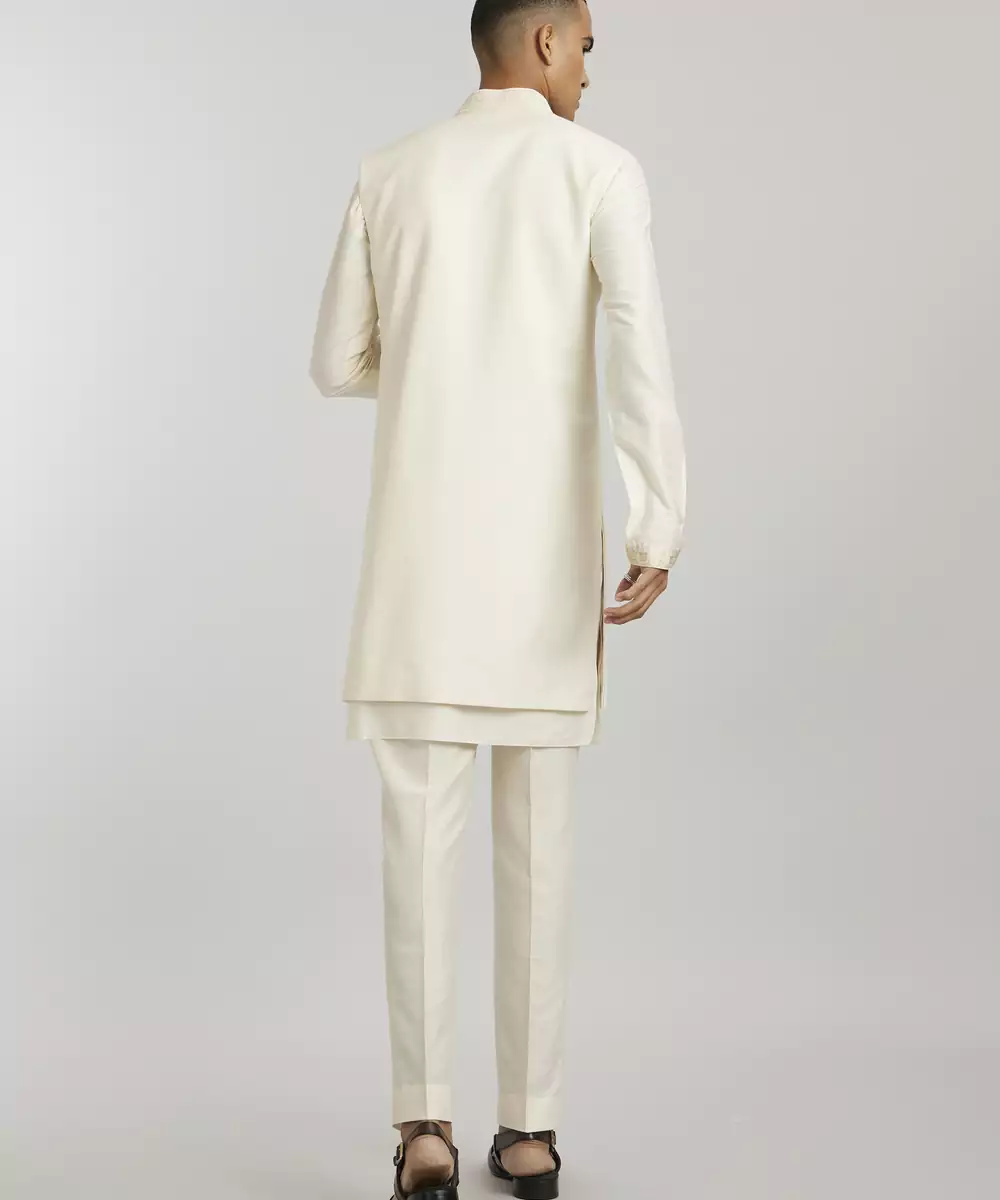 Ivory Classic Embroidered Sleeveless Sherwani Jacket