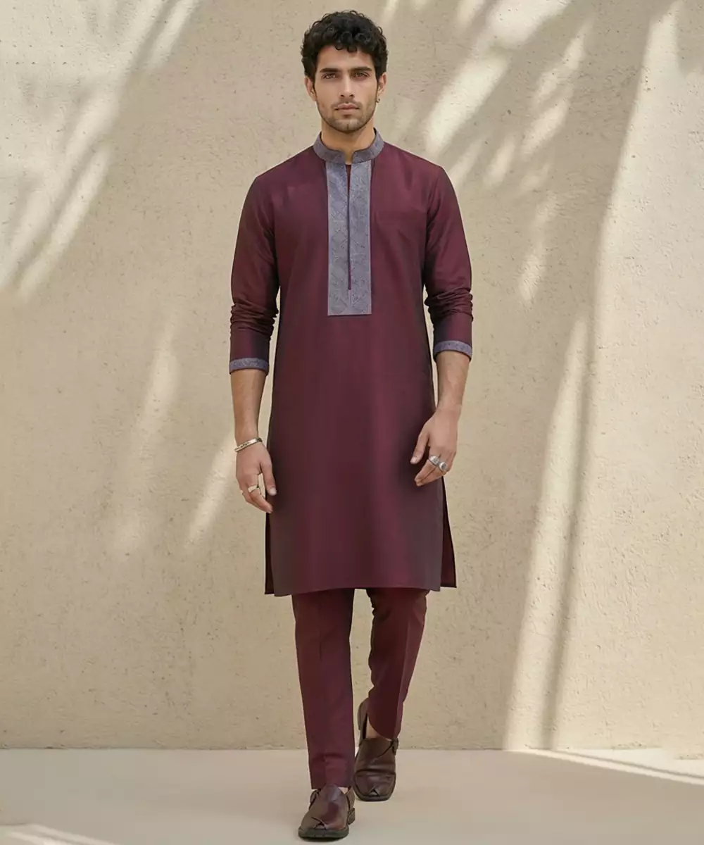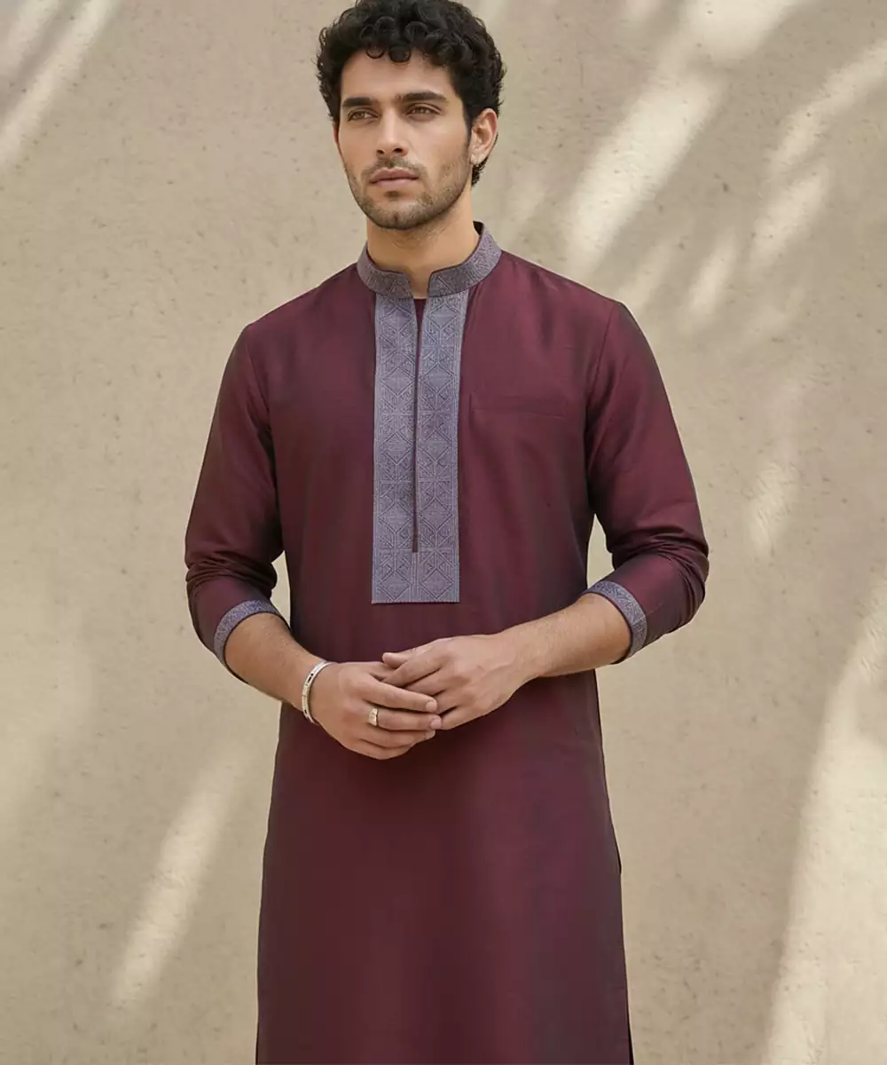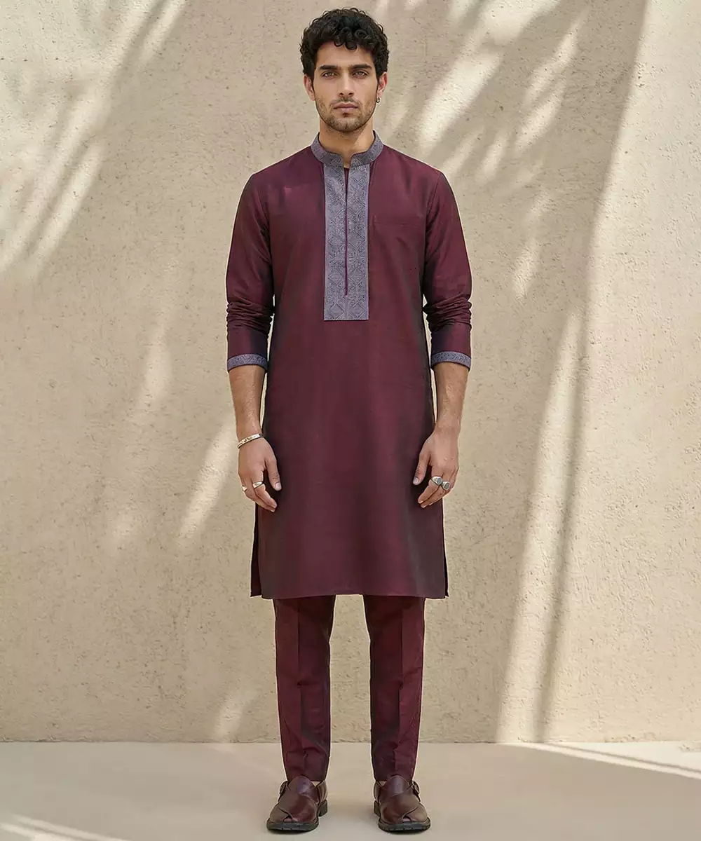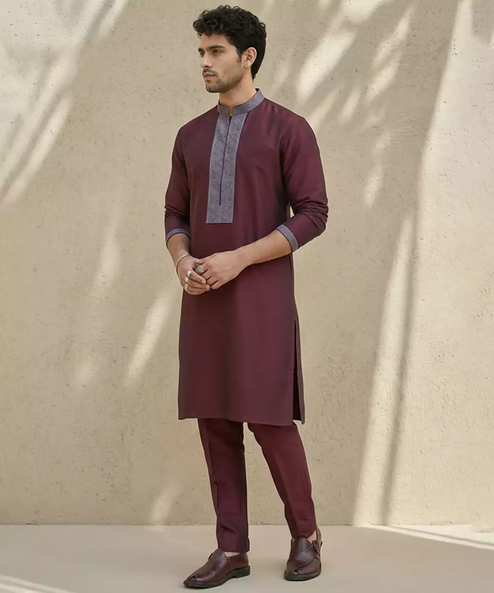 This Maroon Embroidered Cotton Silk Kurta Set Exudes Rich Elegance And Refined Craftsmanship. Made From A Luxurious Cotton Silk Blend, The Kurta Features Intricate Embroidery That Adds A Regal Touch. Perfect For Weddings, Festive Occasions, Or Formal Gatherings, It Pairs Seamlessly With Matching Bottoms For A Sophisticated And Stylish Ensemble.