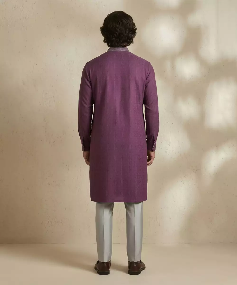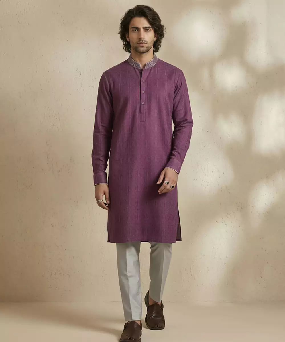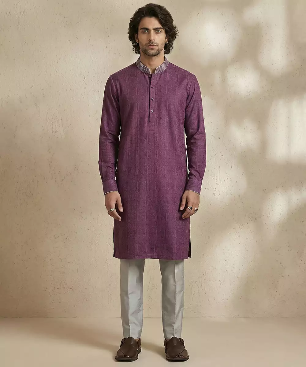 Purple Woven Cotton Kurta Set Radiates Elegance And Comfort In One Ensemble. Made From Soft, Breathable Cotton, The Kurta Features A Subtle Woven Texture That Enhances Its Sophisticated Appeal. Ideal For Festive Occasions, Formal Events, Or Casual Gatherings, It Pairs Perfectly With Matching Bottoms For A Refined, Versatile Look.