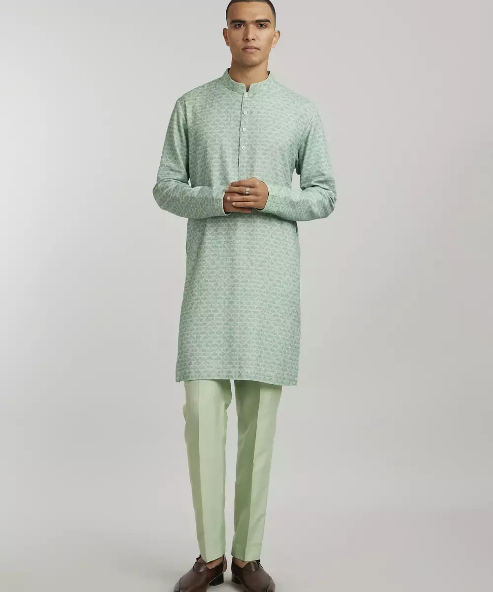 Olive Green Embroidered Jute Jacket With Kurta & Pant