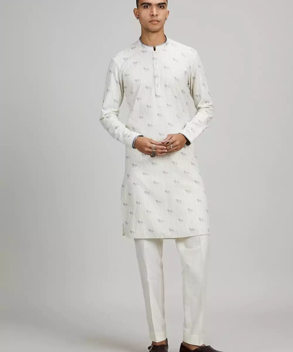 Embrace Timeless Elegance With This White Woven Cotton Kurta Set. Made From Breathable, High Quality Cotton, It Offers All Day Comfort With A Refined Finish. The Subtle Woven Texture Adds Depth To Its Classic Appeal, Making It Perfect For Festive Events, Casual Gatherings, Or Traditional Celebrations. Simple, Sophisticated, And Effortlessly Stylish.