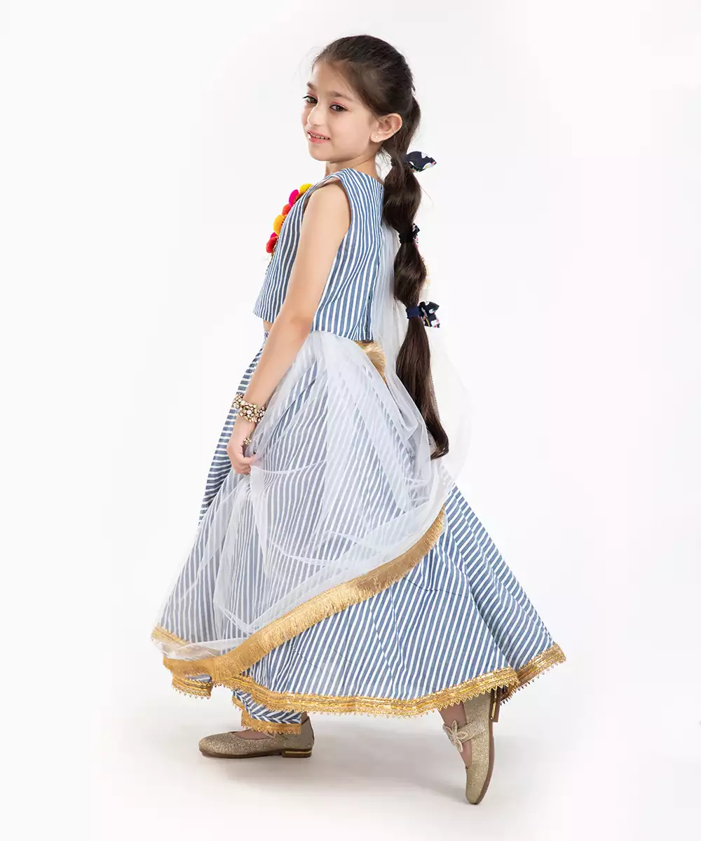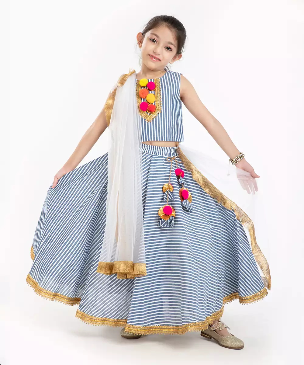 100% Cotton Striper Lehenga Set With Zadi Embellishment.