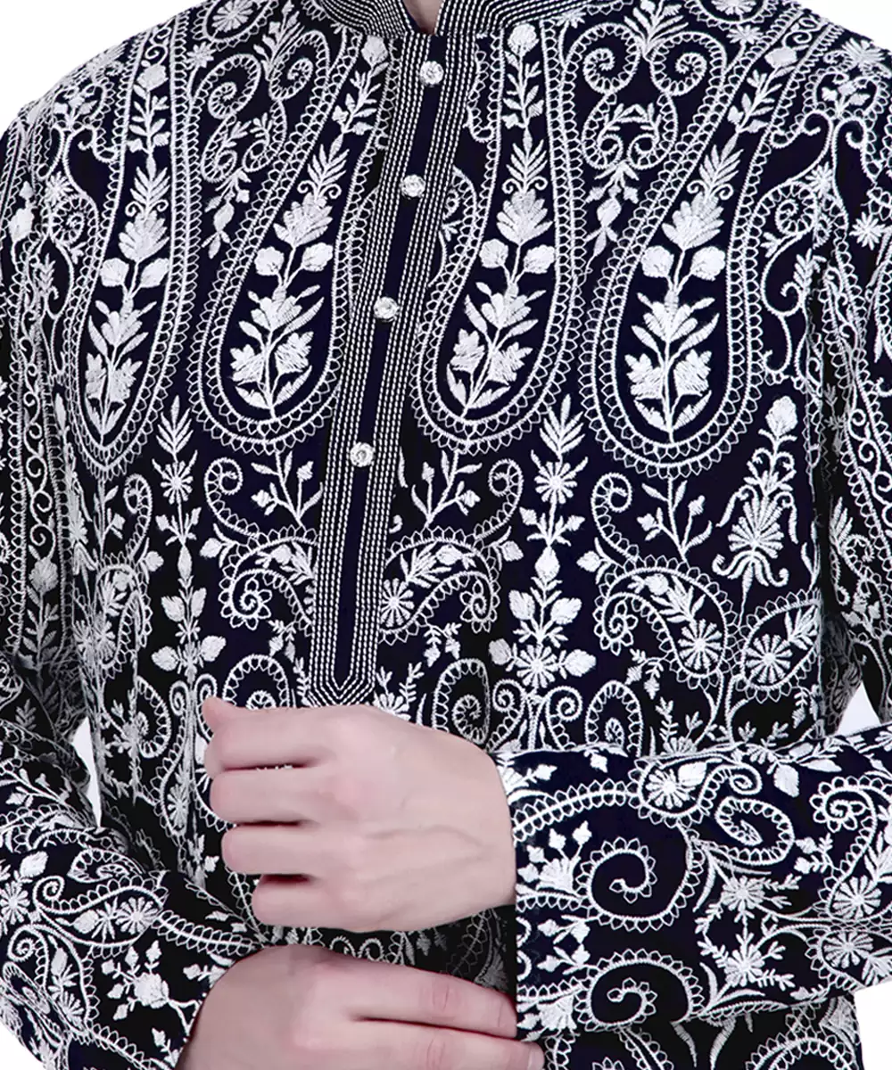 Featuring A Chikankari Blue Kurta In Georgette Base With Floral And White Thread Embroidery. Perfect Attire For Any Festive Occasion, Sangeet Or Engagement Ceremony, Exuding Charm And Elegance.