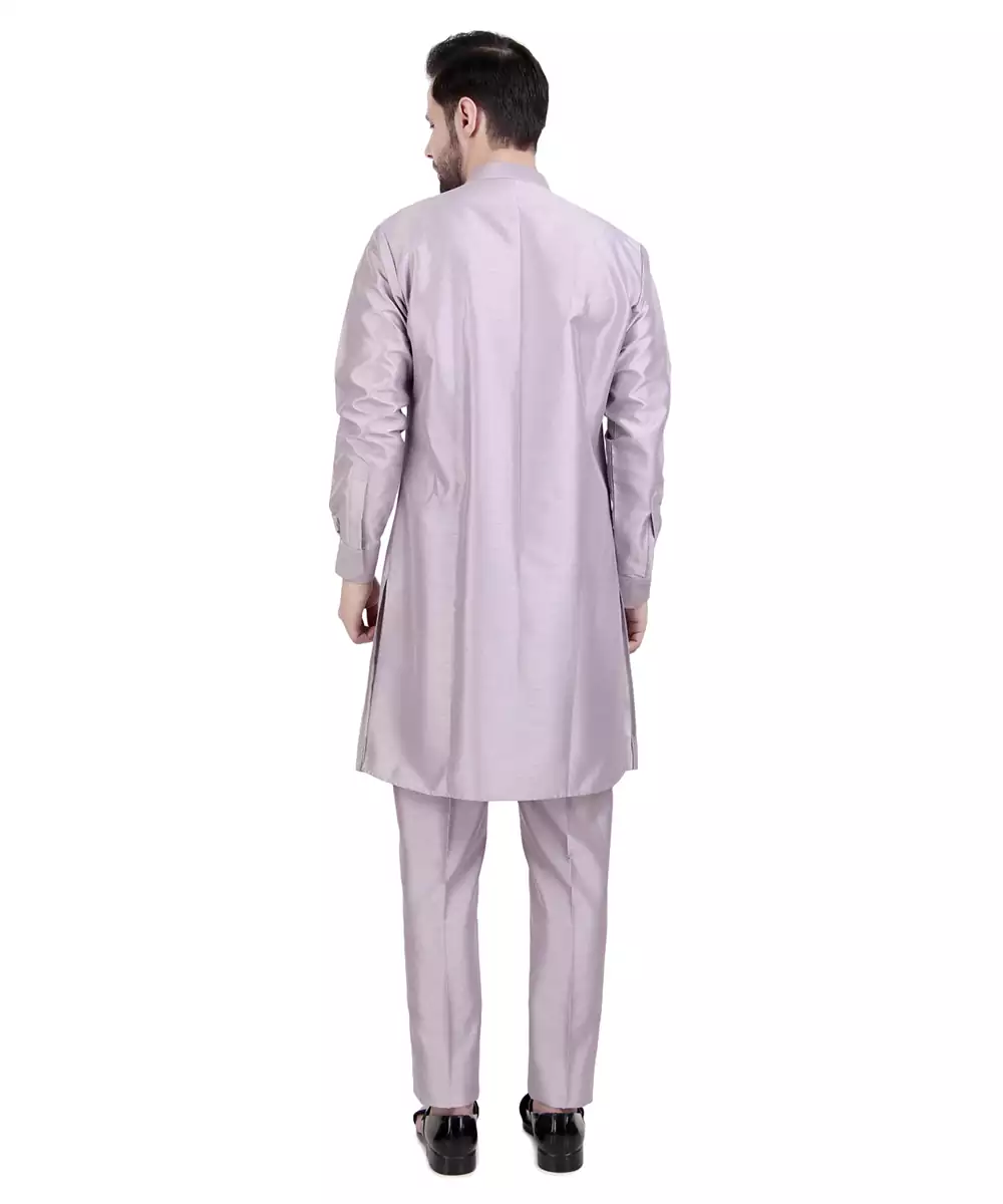 The Purple Faux Dupion Silk Plain Kurta Pajama Is A Refined And Elegant Ensemble, Ideal For Those Who Appreciate Classic Style With A Modern Edge. Crafted From Premium Faux Dupion Silk, The Kurta Features A Subtle Textured Finish That Mimics The Richness Of Pure Silk, Offering Both Visual Appeal And Comfort Perfect Attire For Festive Occasions, Exuding Traditional Charm And Elegance.