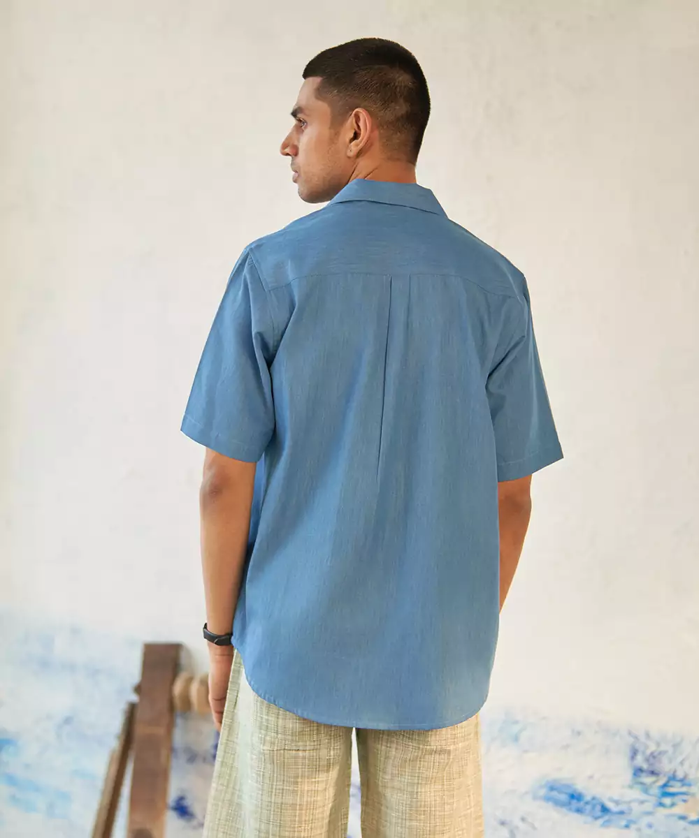 A Timeless Piece Of Casual Wear Crafted In A Beautiful Tone Of Soft Denim. This Short Sleeved Shirt Features A Camp Collar Setting, Tonal Buttons, And Inverted Broad Plackets For Effortless Wearability. The Soothing Blue Hue Of The Soft Cotton Denim Makes It Versatile, Allowing You To Pair It With Any Ensemble As You Navigate Through The Urban Streets With Ease.