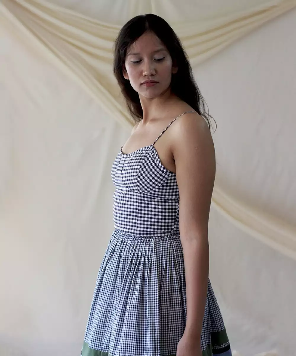 Gingham Checks Bustier Teamed With A Multi Coloured Tiered Skirt With Gingham Checks Hand Applique And Couching Embroidery