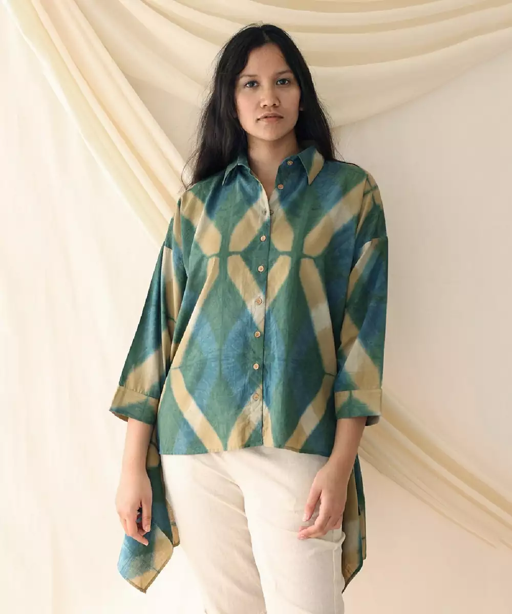 Cream Pure Linen Embroidered Thread Deer Shirt