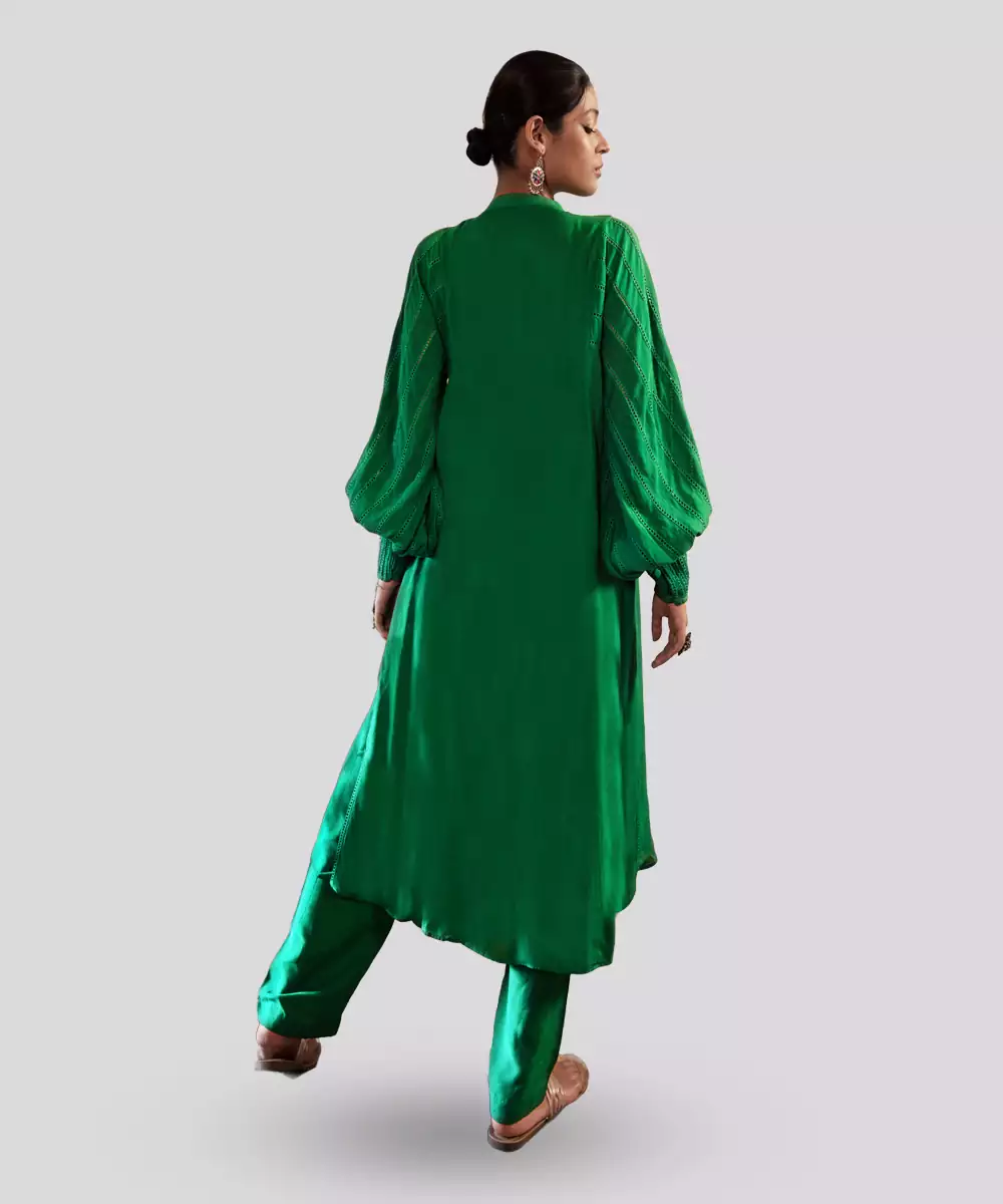 Featuring Green All Weather Silk Dress And Pants Set. .
