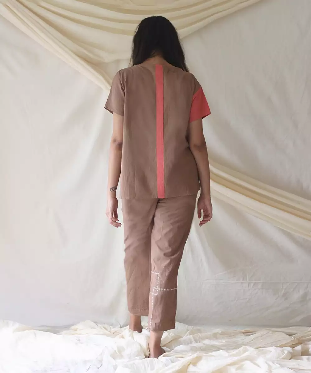 Beige Woven T Women Shirts With Abstract Knot Embroidery