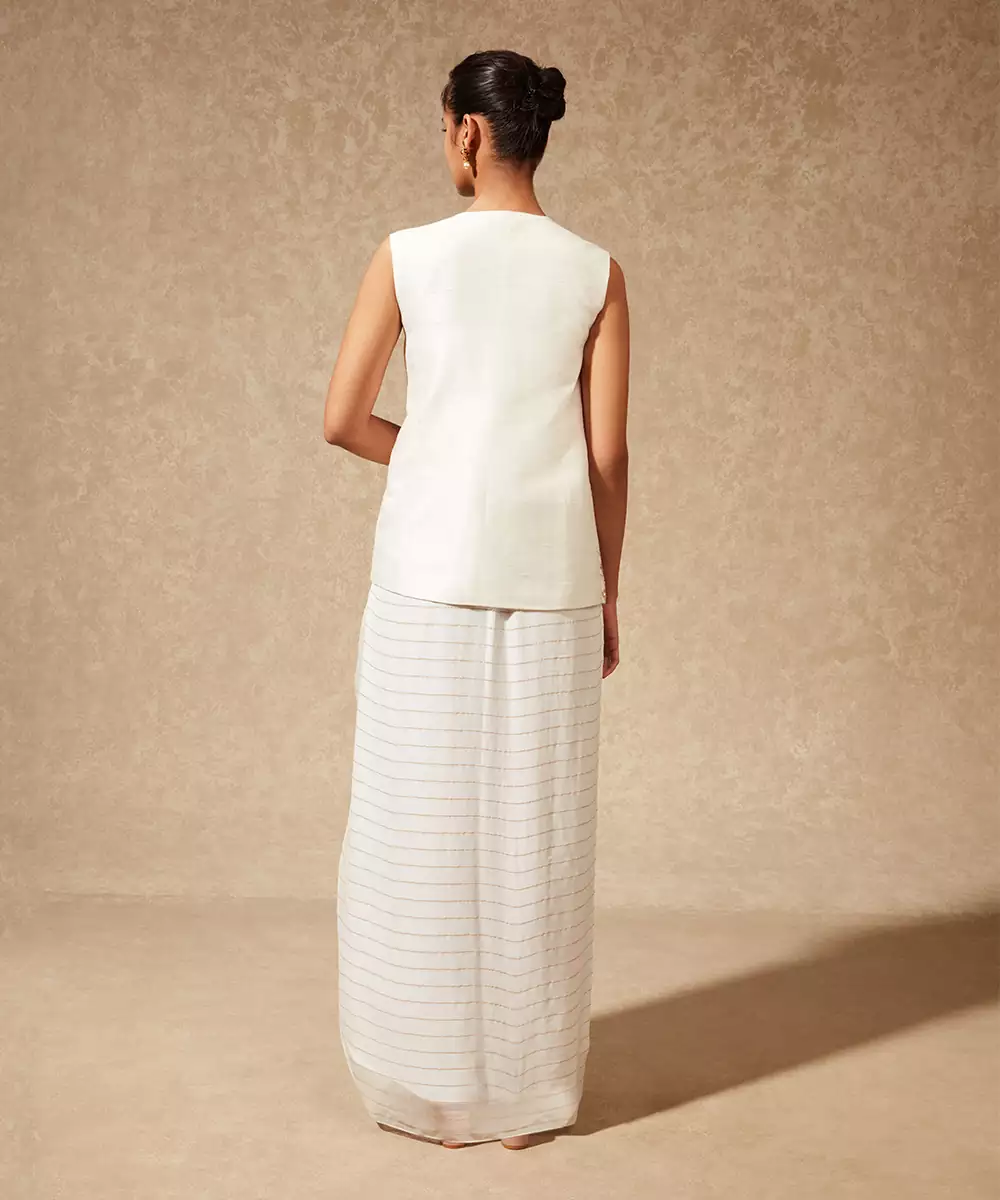 White Hand Embroidery Chanderi Saree