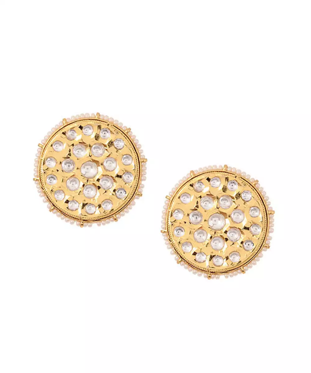 Give Your Outfit An Instant Enhancement By Wearing This Beautiful Pearl Stud Earrings Showcasing Kundan Jadau & Pearl Accents With A Push Button At The Back.