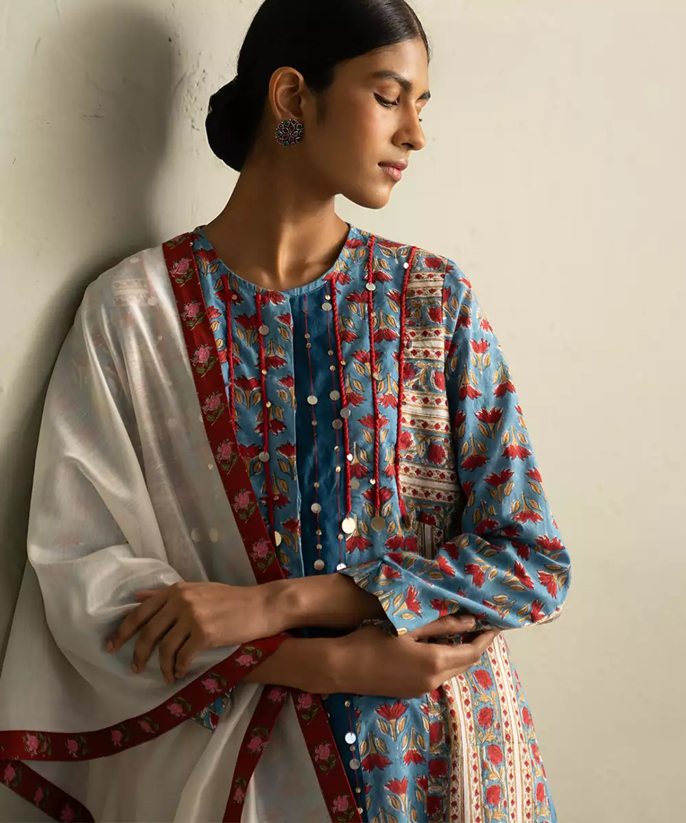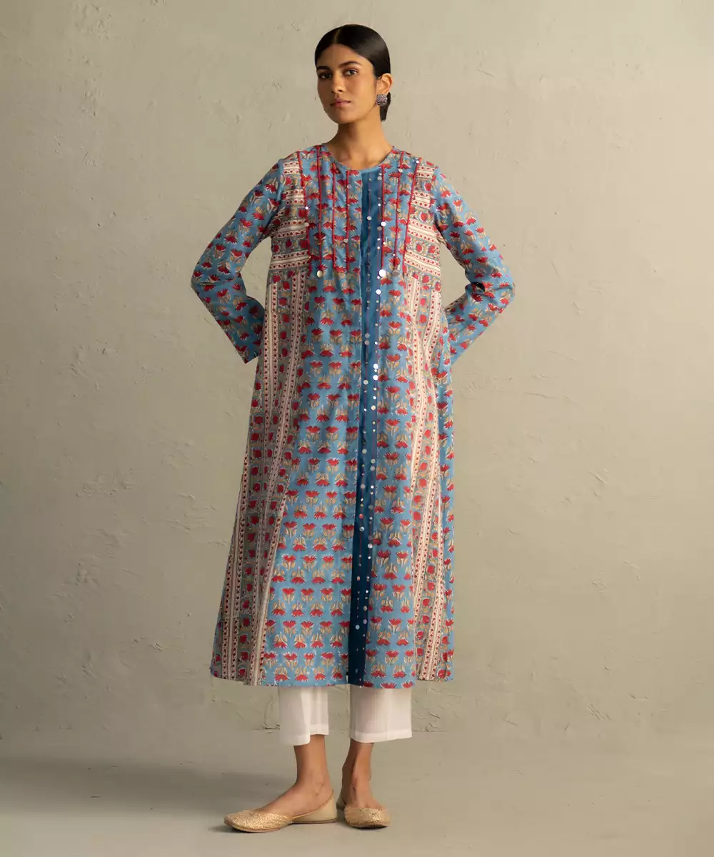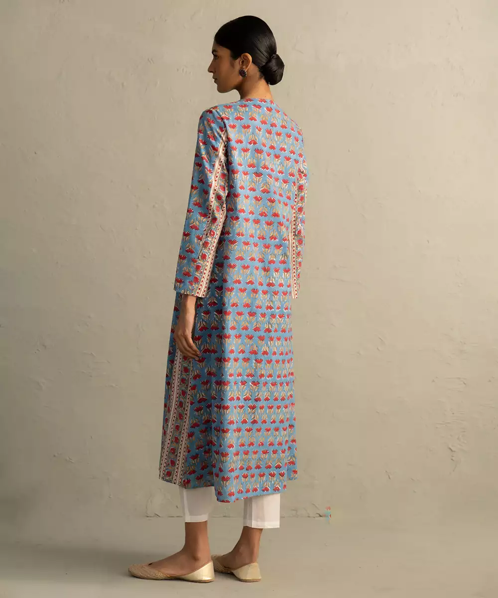 This Blue Printed Cotton Kurta Set Showcases Calming Tones With Stylish Patterns. The Soft Fabric Enhances Comfort, Making It Perfect For Everyday Wear.