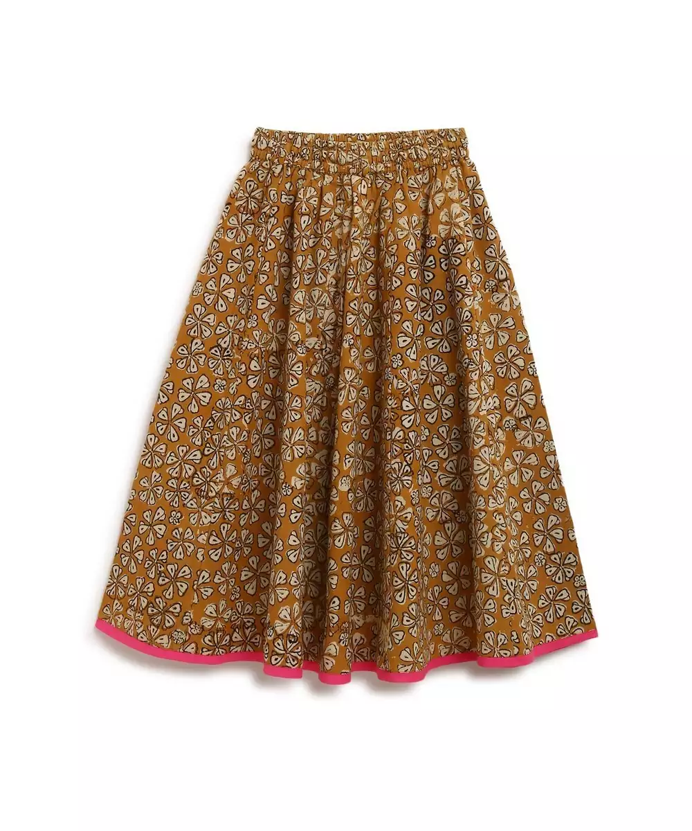 Floral Block Printed Lehenga Set Embellished With Beautiful Gota Tessels. Top Has Wrap Around Style Detailed With Piping Detail.