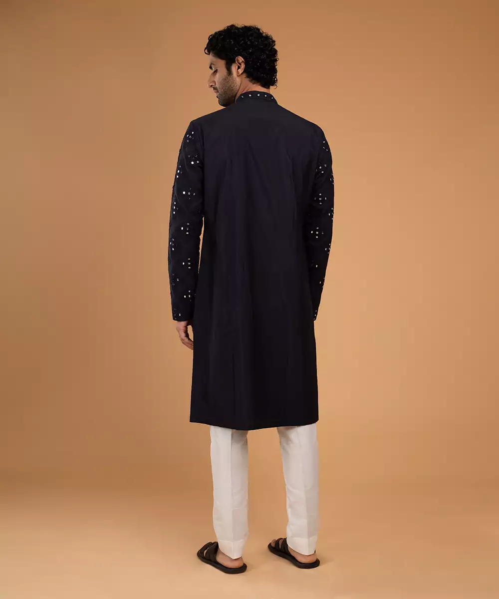 Pink Embroidered Mirror Work Georgette Yasir Kurta (Rani Pink)