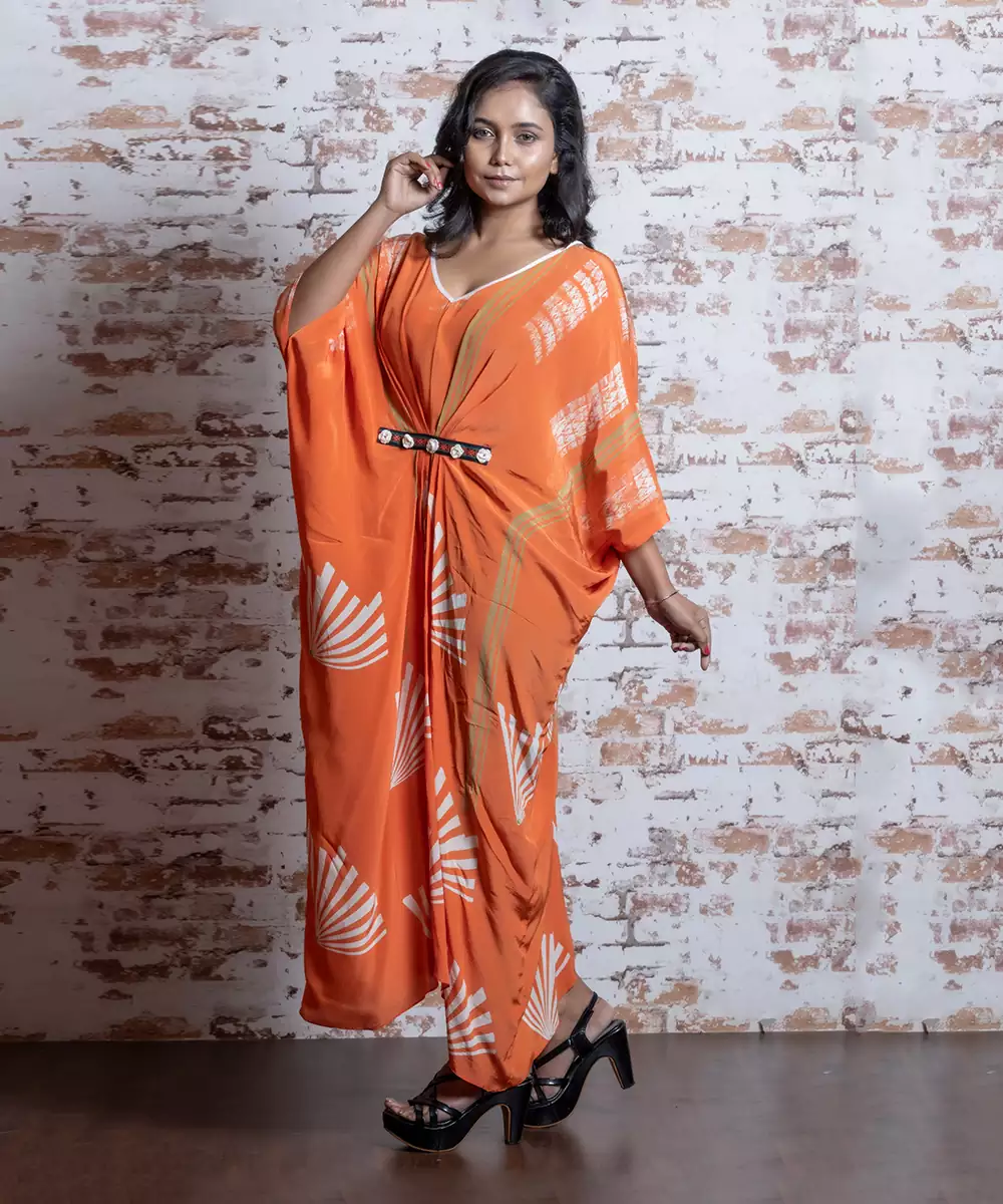 Aerospace Orange Block V Neck Contrast Trimming Kaftan Kaftaan Is A Comfortable Fit, Has Tassles In Front Edges And Is Not Sold With Any Other Product. It Is A Comfortable Fit And Has .