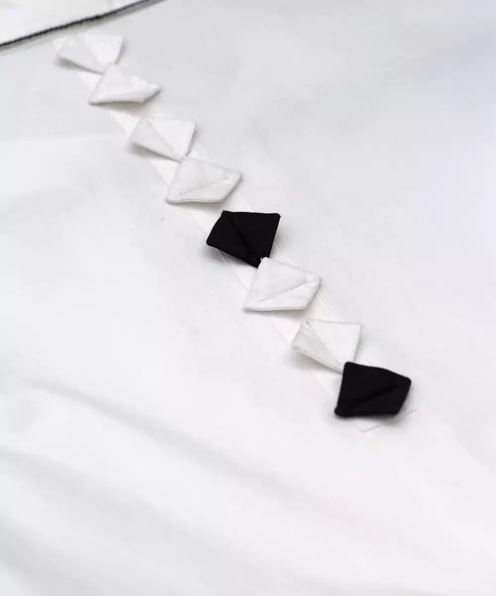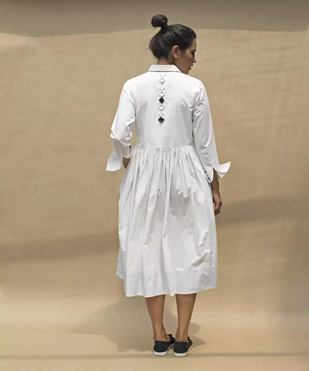 Long Smart Dress With Handstitch Details On The Front And Also Handmade Black And White Origami Details At The Back.