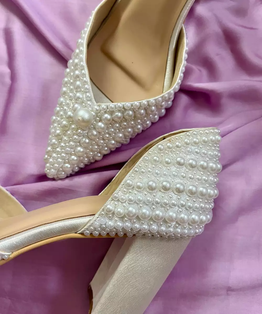 Unleash Your Style With Our Stunning White Pearl Work Heels! Crafted With A Pointed Toe, These Beauties Are Perfect For Any Occasion