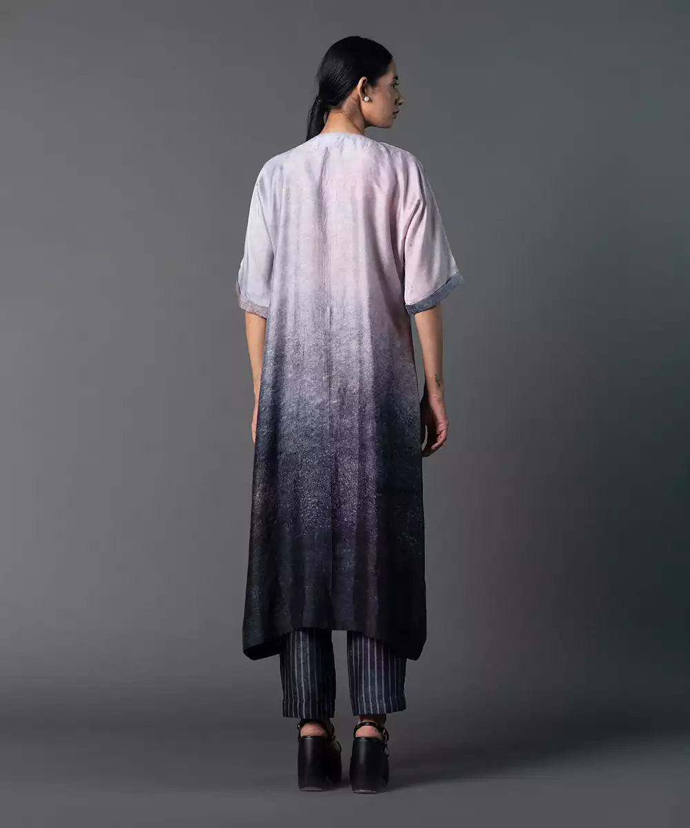 Featuring A Grey And Silver Ombre Kurta With Abstract Floral Print. Paired With Striped Pant. Color : Grey And Silver