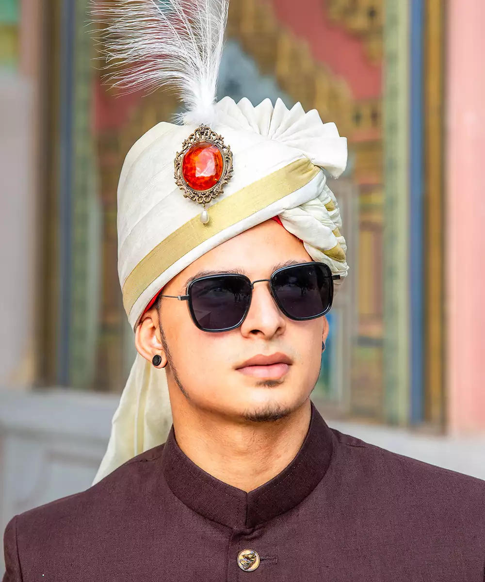 Featuring Exquisitely Crafted Amber Royal Statement Kalangi In Antique Gold With Amber Stone In The Center. This Is Made Of Brass Metal. Wear This Precious Adornment On Any Safa For Wedding.
