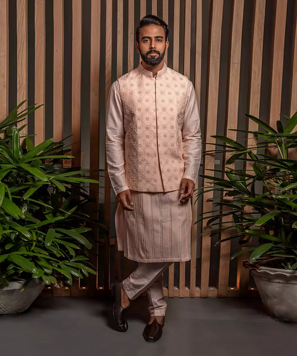 Pink Embroidered Kurta Jacket Set