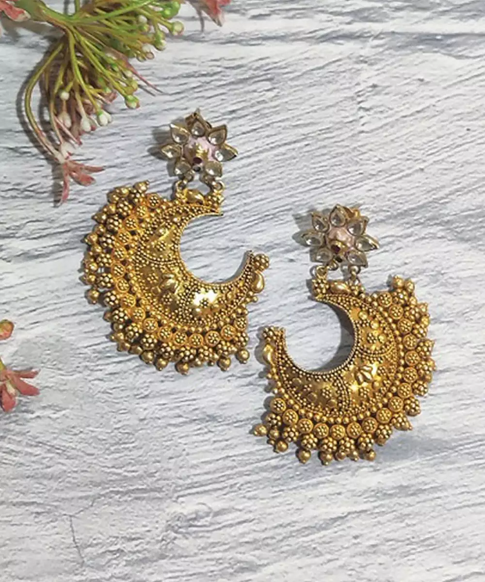 Handcrafted In Silver, This Temple Earing Is A Pieces Of Art From The Pink City Set. Embellished With Imitation Stones It Is A High Class Artistry